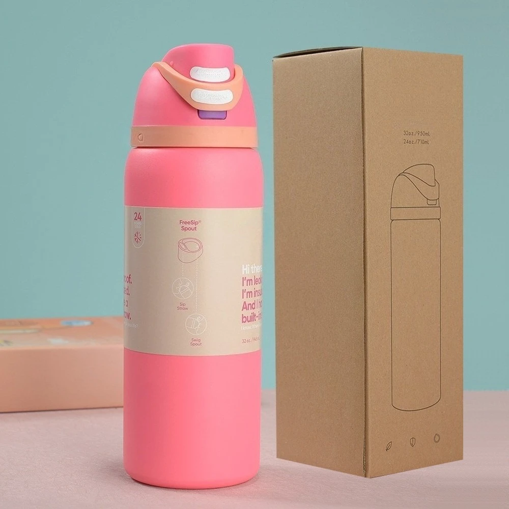 New Iced Bottle Water Bottle Stainless Steel Thermos Cup Cold Straw Iced Coffee Mug Sports Kidsren'S Water Cup24Oz 32 Oz
